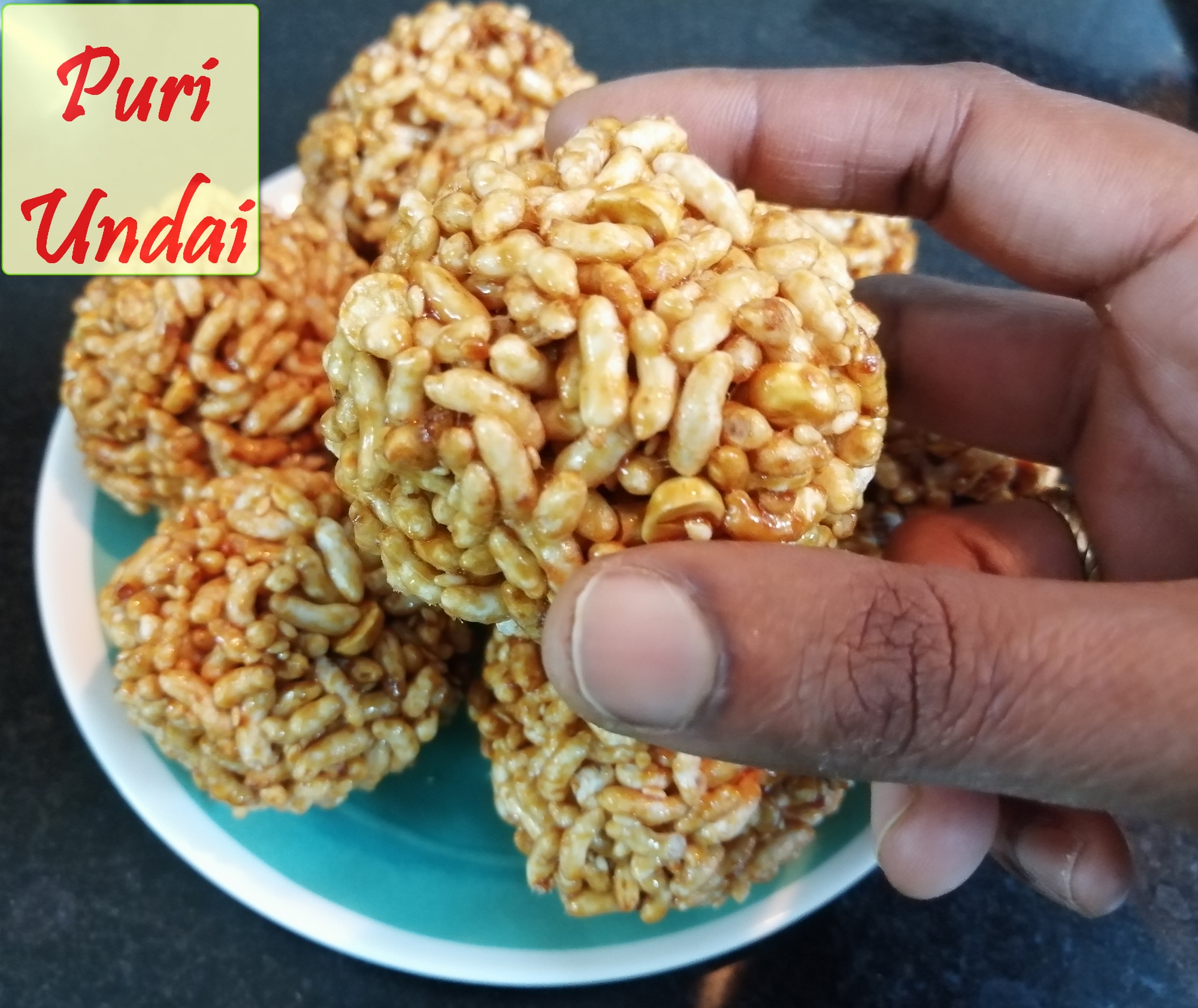 Puri Undai, Puffed rice Undai is a traditional and tasty sweet recipe with step by step pictures and instructions are given below.